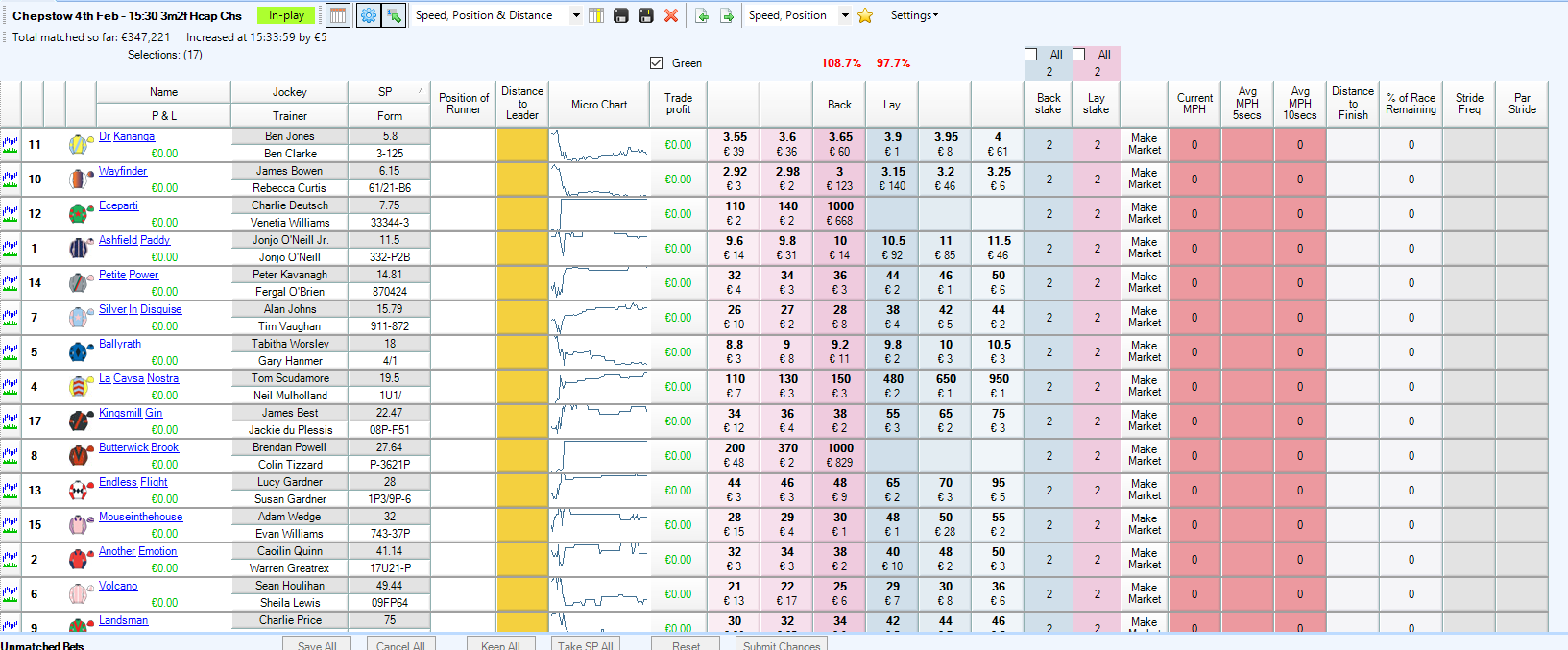 Thanks for this info. It helps us to understand how this technology works and what can go wrong in order to build in stop-checks into our programming.TPD-Zone wrote: ↑Fri Feb 04, 2022 10:42 amRegarding Angelus Diamond data from Tampa Bay 19:13 race 5, Sunday last. The Team have looked into this and unfortunately there is no unequivocal answer. At this track, two GPS trackers are always fitted to each horse and we can say with certainty that one of the two trackers "dropped out" at about the half way mark.