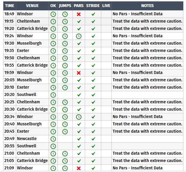 What is tough right now is the status page “treat the data with extreme caution” flag sitting on a bunch of UK meetings for a long time. It has been months, and for most people that label means the same thing: skip those races entirely. That is months of missed opportunities on meetings where TPD would normally be a big edge, because the downside is too big if the feed is not reliable.