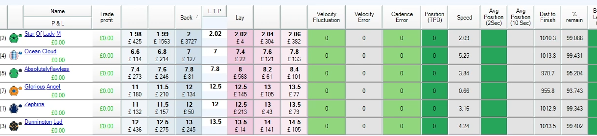 The distance to finish for all horses were never in synch when the horses were in the gates. Absolutely flawless and Glorious Angel appeared to be 30-40 m in front initially just millisecond before the off and as the race is suspended they are all reset to ~1019