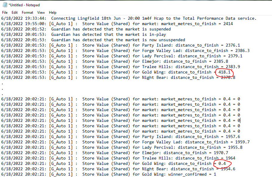 Our investigations have highlighted that the trackers on Gold Wing threw the GPS points all over the racecourse, at the very start of the race, and to which the system interpreted as a lap. The system is meant to trap such instances, but clearly that failed on this occasion. Steps are being taken to prevent a reoccurrence.