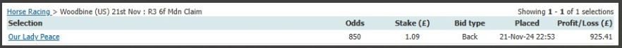 I think I have been obsessing with the 2 or 3 runners at the front when so often they can all be beaten by a late appearance from a hold up horse. Certainly seems that was the case with Our Lady Peace. Fantastic